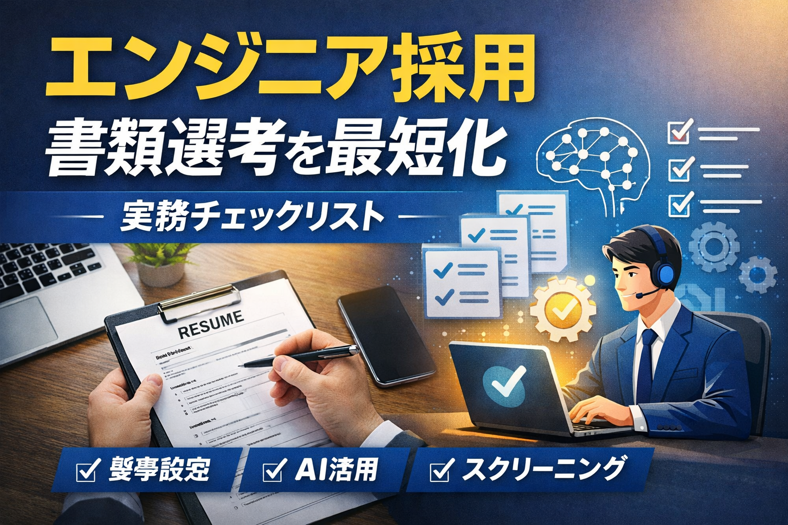 書類選考に時間がかかる一方で、見送った候補者が後から魅力的に見える——そんな経験は多くの現場で起きています。エンジニア採用は職種特性上、スキルの深さと業務適性を短時間で判断しにくく、評価が「なんとなく」になりやすい領域です。本記事では、判断の軸を言語化し、チームで回せる手順に落とし込むことで、スピードと精度の両立を目指します。