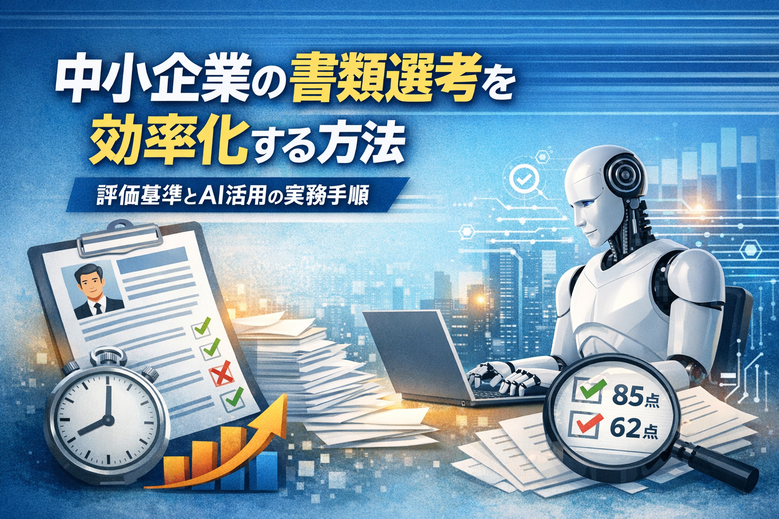 採用がうまくいかないとき、原因は「母集団不足」だけとは限りません。中小企業では、忙しさの中で書類選考が属人化し、基準が曖昧なまま判断してしまうことが多いです。その結果、面接が増えすぎたり、現場が疲弊したり、逆に良い人材を見逃したりします。だからこそ、採用の入り口である書類選考を、少人数でも回せる“仕組み”にすることが重要です。