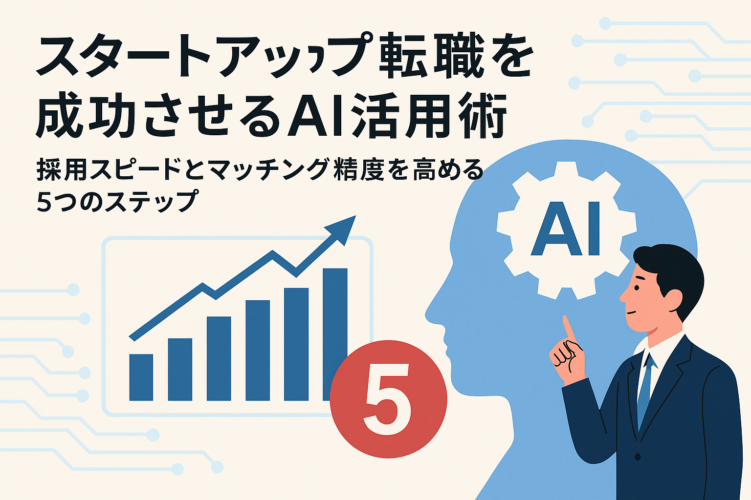 本記事では、中小企業・スタートアップの人事担当者や経営層の方に向けて、**転職希望者とのマッチング精度を高めながら採用スピードも向上させる「AI活用型・スタートアップ転職成功プロセス」**を、5つのステップで整理します。