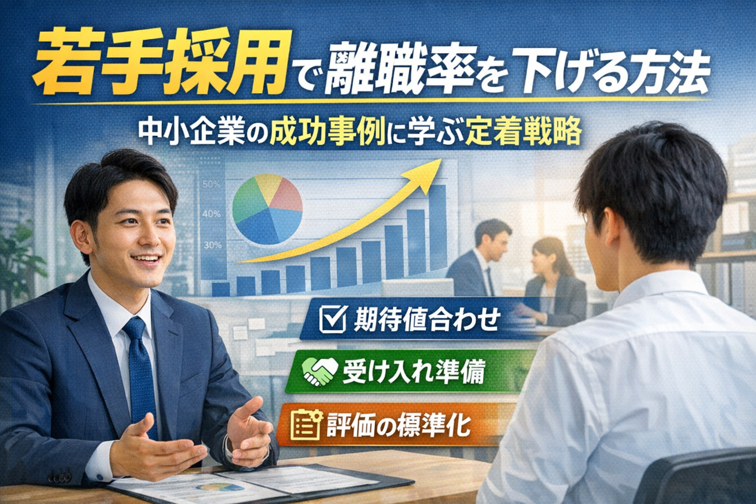若手採用で離職率を下げるには、「採用を増やす」より「辞めにくい仕組み」を先に作ることが重要です。